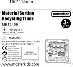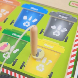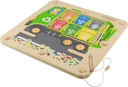 Ta edinstvena lesena tabla Masterkidz ponuja otrokom odličen način, da se naučijo osnov razvrščanja odpadkov. S pomočjo magnetne paličice je naloga otrok, da premaknejo kroglice z odpadki v ustrezne zabojnike. Zabojniki so nameščeni na ilustraciji velikega zelenega recilkačnega tovornjaka.
