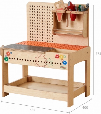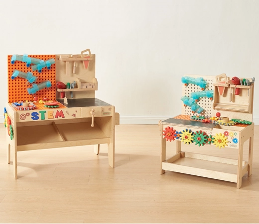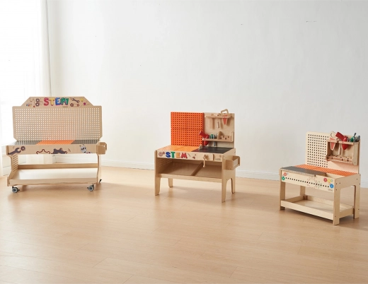 Leseni STEM delovni kotiček navdihuje otroke k ustvarjanju resničnih funkcionalnih sistemov in zabavi pri gradnji z realističnimi orodji.