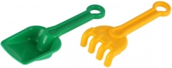 Lopatka in grabljice z gladkimi robovi so prilagojene majhnim otroškim rokam. Primerno od 12 mesecev in idealno za prve igre v pesku.