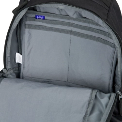 Pregledna notranjost s podloženim žepom za prenosnik in dodatnimi predelki ohranja vašo opremo varno in sistematično urejeno.