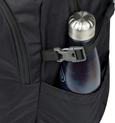 Elastičen stranski žep z zaponko varno drži plastenko z vodo in drobnarije, ki jih potrebujete hitro pri roki.