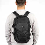 Vzdržljiv, vodoodbojen material brez težav kljubuje manjšemu dežju in se hitro suši. Notranja organizacija s podloženim žepom za prenosnik in dodatnimi predelki ohranja vaše stvari pregledne in na varnem. Praktične podrobnosti, kot so žep za očala, karabin za ključe in pašček za pritrditev na kovček, povečujejo udobje pri potovanju.