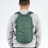 Vodoodbojen material se enostavno čisti in hitro suši, zato vsebina ostane varna tudi v slabem vremenu. Brezčasni dizajn dopolnjujejo pametne podrobnosti, kot so vgrajen žep za prenosnik, praktičen žep za očala, karabin za ključe in pašček za pritrditev na potovalno prtljago. Odstranljivi podporni pasovi pomagajo razporediti obremenitev in razbremenijo hrbet.