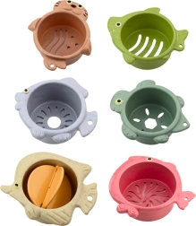 Ti lončki so veliki, lahki in jih je enostavno prijeti z majhnimi rokami, kar je odlično pri učenju prijemanja in manipulacije s predmeti. Otroci lahko gradijo stolp, vstavljajo lončke enega v drugega ali jih uporabljajo med kopanjem – zaradi odprtin omogočajo pretakanje vode. S tem lončki pridobijo senzorično dimenzijo in odlično delujejo tudi kot kopalni dodatek.