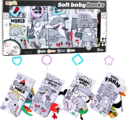 Komplet mehkih senzoričnih knjig za dojenčke ponuja raznolik svet tem, ki spodbuja domišljijo otrok in jim pomaga odkrivati raznolikost okoliškega sveta. Knjige so izdelane iz mehkih, prijetnih materialov, ki so popolnoma varni za občutljivo kožo dojenčka. Vsaka knjiga vsebuje izstopajoče elemente in šumeče strani, ki podpirajo senzorični razvoj otroka - spodbujajo dotik, sluh in vid.