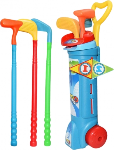 Otroški komplet za golf prinaša veselje in razvoj zaradi svoje pisane barvitosti in raznolikih dodatkov. Vključuje tri različne golf palice z barvnimi konicami, štiri lahke in varne kroglice, dva stojna s zastavicami, stojala za kroglice in posebno golf igrišče, ki ustvarja za otroke miniaturno golf igrišče. S tem kompletom lahko otroci ustvarjajo lastne proge, tekmujejo s sovrstniki in izboljšujejo svojo natančnost in koncentracijo.