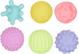 V paketu je 6 barvitih, mehkih žogic, vsaka z drugačno teksturo in obliko, vključno s površinami z izboklinami, zarezami, gladkimi in koničastimi elementi. Ta raznovrstnost zagotavlja raznolike tipne dražljaje. Otroci se med igro učijo prepoznavati oblike, strukture in barve, kar pozitivno prispeva k njihovemu kognitivnemu razvoju.