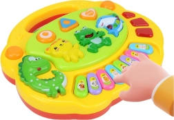 Ta barvni klavirček ponuja odlično zabavo za vašega otroka, ki se z njegovo pomočjo nauči prepoznavati glasove žabe, muce, psa in mnogih drugih živali, kar spodbuja razvoj domišljije in asociativnega mišljenja.