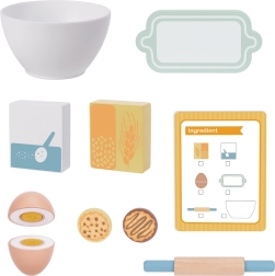 V kompletu je celoten nabor dodatkov: skleda, moka, sladkor, jajce na ježka, valjar, pekač, piškoti in recept. Igra razvija ustvarjalnost, domišljijo, ročne spretnosti in koncentracijo – hkrati pa je to zabava brez zaslona.