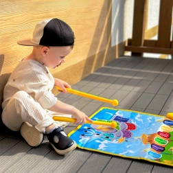 Ta barvita glasbena podloga WOOPIE podpira fino motoriko, slušno zaznavo in ustvarjalnost. Zahvaljujoč dvema igralnima površinama lahko otroci izbirajo med klaviaturo klavirja in tolkali, raziskujejo tone, ritme in sestavljajo lastne melodije.