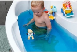S pomočjo medvedka Baby Born Splish Splash se bo vaš otrok spremenil v kapitana lastne vodne odprave. Ta ljubki medvedek je zasnovan posebej za igre v vodi in ne potrebuje baterij, da plava. Dovolj je, da zavrtite njegove roke nazaj in ga položite na vodno gladino, kjer se z lahkoto premika.