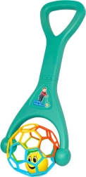 Igrača je sestavljena iz velike elastične krogle z odprtinami za lažji prijem in udobnim turkiznim ročajem. V krogi je manjša prosojna kroglica z barvnimi ropotajočimi kroglicami, ki ob gibanju oddajajo zvoke in zabavajo otroke. Krogla se lahko kotalijo, mečejo, stiskajo ali, ko je ročaj pritrjen, potiskajo in vlečejo, kar jo naredi zelo vsestransko in dinamično igračo.