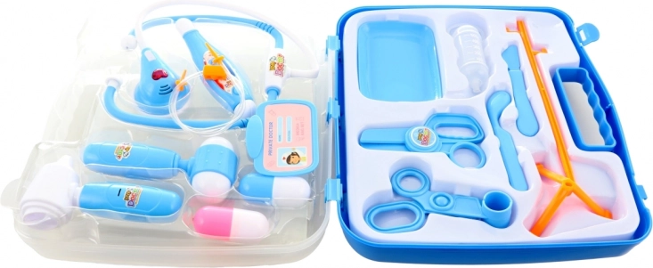 Otroci se radi vživijo v vlogo zdravnika in s tem zdravniškim kompletom v kovčku lahko simulirajo različne zdravniške preglede. Kovček vsebuje: