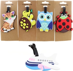 Praktična ime za prtljago ali nahrbtnik iz mehkega plastike z dimenzijami približno 12x8 cm. Idealna za preprosto identifikacijo vaše prtljage.
