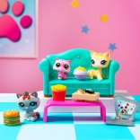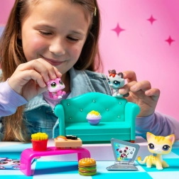 Uživajte v ustvarjalni igri z igralnim paketom Littlest Pet Shop, kjer vas čakajo 3 prisrčne muce, udoben turkizen kavč in kup mini dodatkov. Set spodbuja domišljijo, igranje vlog in zabavno zbiranje – vključno z virtualno kodo za odklep presenečenj.