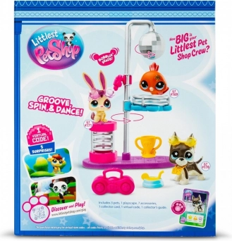 Vstopite v svet LITTLES PET SHOP in uživajte v disko vzdušju! Ta igrivi set prinaša tri plesne ljubljenčke, pripravljene, da zasijejo pod svetlobo disko krogle. Vrtljive ploščadi jim omogočajo, da se vrtijo in pokažejo svoje najboljše gibe, medtem ko jim trendovski dodatki poudarijo osebnost.