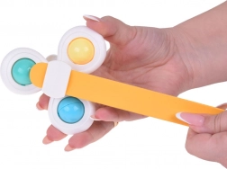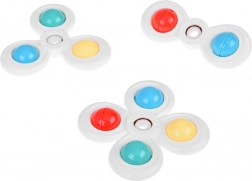 Zahvaljujoč posebnim vrtečim obročem spinner razvija motorične sposobnosti vašega otroka in mu nudi neskončno zabavo. Spinner je na voljo v 3 kosih, vsak s svojim priseskom in trakom, ter prinaša pisane in zabavne trenutke.