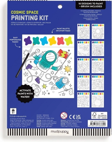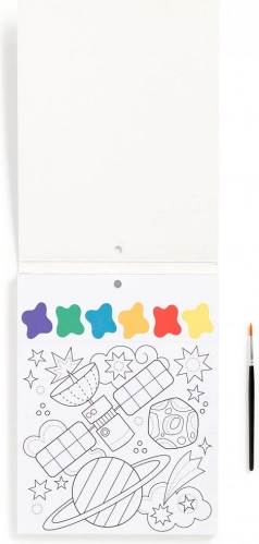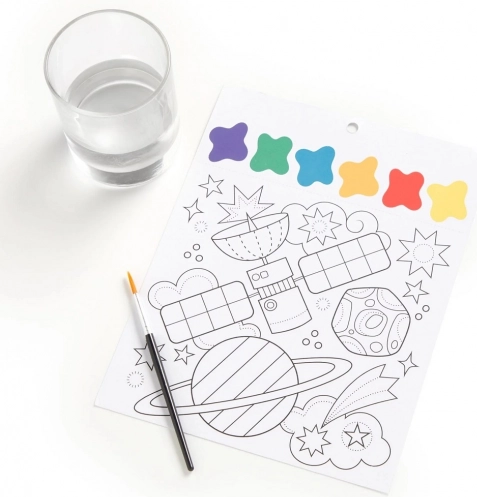Pomagajte svojemu otroku razvijati ustvarjalnost in fino motoriko z barvnim setom z vesoljsko tematiko. Vključuje čopiče in 10 predtiskanih listov z barvno paleto.