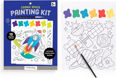Razvijajte otrokovo ustvarjalnost z barvnim vesoljskim setom. Vključuje čopiče in predtiskane liste. Primerno od 5 let dalje.