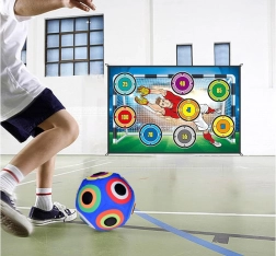Komplet za nogomet s tarčo je zasnovan tako, da je varen in prijazen do otrok. Izdelan je iz trpežnih, netoksičnih materialov, ki so mehki in varni. Barvita in privlačna tarča pritegne pozornost otrok in jih spodbuja k vadbi. Svetleča žoga prinaša igri dodatno presenečenje; sveti ob metu, kar povečuje zabavo. Igra je preprosta za uporabo; otroci se lahko sami trudijo zadeti žogo v odprtine, s čimer razvijajo natančnost in koncentracijo. Poleg tega podpira razvoj motorike; metanje, merjenje in lovljenje pomagajo vaditi fino motoriko ter koordinacijo roke in očesa.