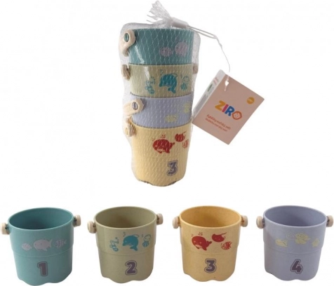 Komplet Ziro vedričkov z motivom morskega sveta je idealna igrača za kopel za najmlajše. Otroci lahko z njimi zajemajo, prelivajo in cedijo vodo, kar naravno razvija njihovo čutno zaznavanje in fino motoriko. Zaradi živahnih barv in označevanja je to tudi zabavno orodje za učenje barv in števil.