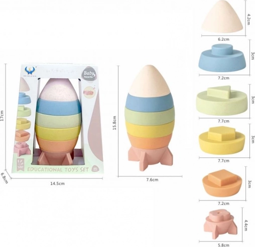 Zabavna zlagalna igrača v obliki rakete, ki otroke naravno uči prepoznavati barve in oblike, uri fino motoriko ter spodbuja koordninacijo oko–roka. Idealna za prve raziskovalne korake in zlaganje.