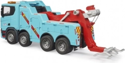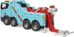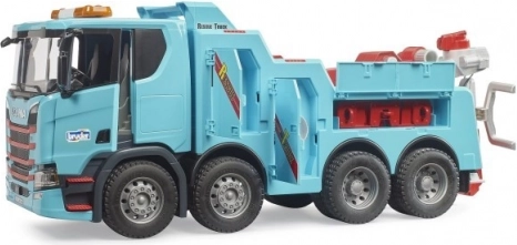 Robustno reševalno in vlečno vozilo BRUDER na podvozju SCANIA SUPER 560R zvesto posnema prava interventna vozila. Zahvaljujoč podrobno izdelani kabini z odpirajočimi se vrati in pokrovom motorja, funkcionalnemu vitlu ter izvlečni roki s kavljem bodo otroci doživeli pristno reševalno akcijo na cesti.