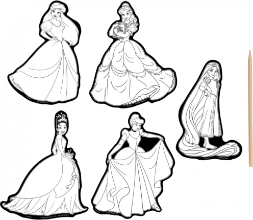 Odkrijte čarobni svet Disney princesk s tem ustvarjalnim kompletom praskajočih nalepk. S praskalom razkrijte barvne slike, skrite pod črno plastjo.