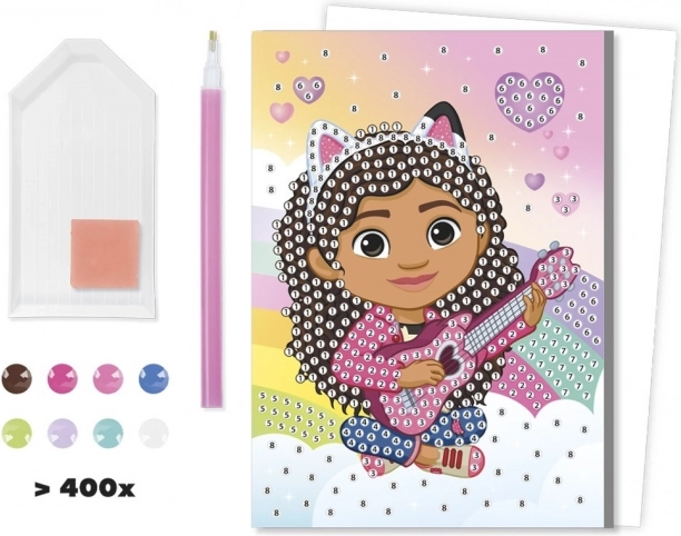 Naj se vsak vaš sporočilniček zaiskri z originalnim sijajem! S tem kompletom boste zlahka ustvarili edinstveno voščilnico, ki bo razveselila vsakogar. Barvne kamenčke preprosto namestite s priloženim orodjem in rezultat je bleščeč 3D učinek s priljubljenim motivom Gabikinega čarobnega domka.