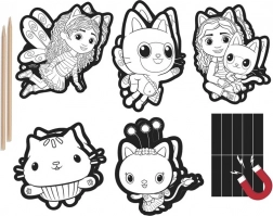 Ta ustvarjalni komplet otrokom prinaša veselje do ustvarjanja, hkrati pa razvija fino motoriko, potrpežljivost in domišljijo. Motivi iz priljubljene serije Gabičin čarobni domek bodo razveselili vse male oboževalce in spremenili vsak izdelek v izvirno magnetno dekoracijo.