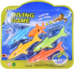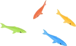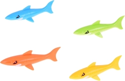 Komplet vključuje 4 pisane morske pse, dolžine približno 12 cm in širine 3 cm, narejene iz mehke, potapljajoče se gume. Te igrače so prijetne na dotik, brez ostrih robov in popolnoma varne za igro v vodi, bodisi v bazenu, otroškem plitvaku ali kadi.