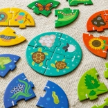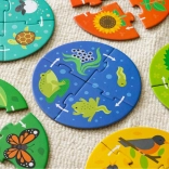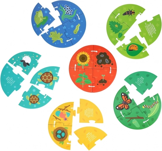 Puzzle Odkritelj Cikla Življenja pomaga prebujati zanimanje za naravni svet. Ta komplet vsebuje šest majhnih sestavljank, ki prikazujejo življenjske faze polonice, metulja, želve, žabe, rože in ptice. Izdelek prispeva k razvoju koordinacije roka-oči, kognitivnega razvoja in sposobnosti reševanja problemov.