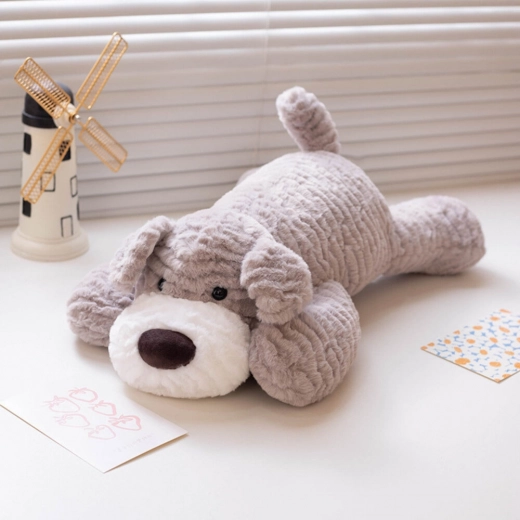 Plišasti kužek ima prijazen obraz z velikim smrčkom, dolgimi povešenimi ušesi in košatim repkom, kar mu daje izredno ljubek videz. Leži v udobnem, naravnem položaju z iztegnjenimi tačkami, kar spominja na pravo pasje mladiče. To podpira otrokovo domišljijo, spodbuja k ustvarjanju scenarijev in zgodb s kužkom kot glavnim junakom ter tako krepi čustveni razvoj in ustvarjalnost.