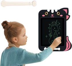 Lahka in tanka zasnova zagotavlja enostavno prenašanje v nahrbtniku, ergonomsko pisalo pa udobje tako doma kot na poti. Zabaven mačji motiv pritegne pozornost in naredi tablico privlačno za otroke. Tablica je idealna za otroke, ki imajo radi risanje, pisanje in vadbo svojih prvih projektov.