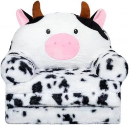 Očarljiv dizajn s značilnimi črno-belimi lisami, prijaznim obrazom, roza nosom, izstopajočimi ušesi in mehkimi rogovi takoj pritegne pozornost otrok in prinaša v notranjost veselo in prijetno vzdušje. Vzorec krave se odlično ujema z dekoracijo otroške sobe in postane njen funkcionalen dodatek.