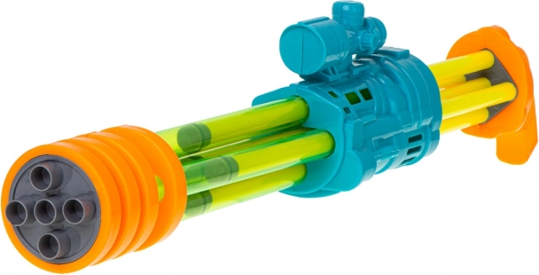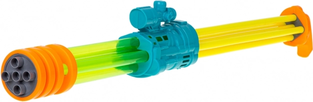 Privlačne barve kot so modra, zelena in oranžna skupaj z dizajnom mini topa pritegnejo pozornost otroka in mu dajo občutek junaštva med igro.