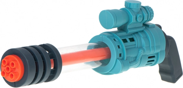 S podrobno skrbjo za vsak element je ta pištola pripravljena vzdržati številne vodne bitke. Njene svetle barve pritegnejo pozornost in spominjajo na pravo orožje, kar spodbuja otroško domišljijo. Izdelek je narejen iz plastike in je popoln tudi za odrasle, tako da se lahko z njim zabava vsak! Dovolj je, da jo napolnite z vodo in igra se lahko začne!