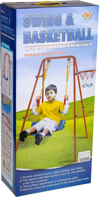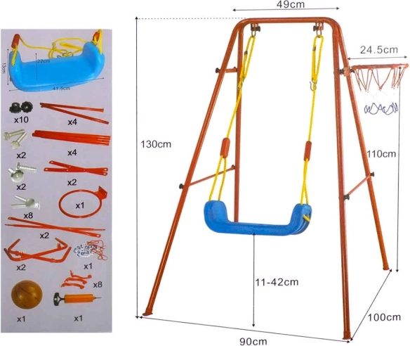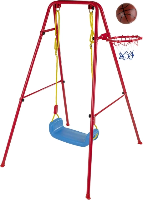 Ta vsestranska vrtna gugalnica združuje priljubljeno guganje s košarkarsko zabavo. Stabilno kovinsko ogrodje s premerom cevi približno 2,5 cm in močna vrv držita širok plastičen sedež (pribl. 43 × 25,5 cm) za udobno in varno uporabo. Del kompleta je košarkarski koš, ki ga je mogoče preprosto pritrditi na ogrodje, ter tudi mini žoga in tlačilka za takojšnjo igro.