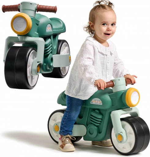 Poganjalni motor Falk Retro v zeleni barvi je odličen tako za uporabo v notranjih prostorih kot na prostem. Izdelan je z mislijo na varnost in udobje malega uporabnika.