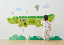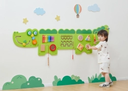 Ta velika stenska aktivna tabla v podobi veselega krokodila je razdeljena na več panelov, ki otroke spodbujajo k raziskovanju. Barviti elementi prebujajo radovednost, razvijajo čute in podpirajo samostojno igro. Trdna lesena konstrukcija z gladkimi robovi je varna in vzdržljiva za vsakodnevno uporabo.