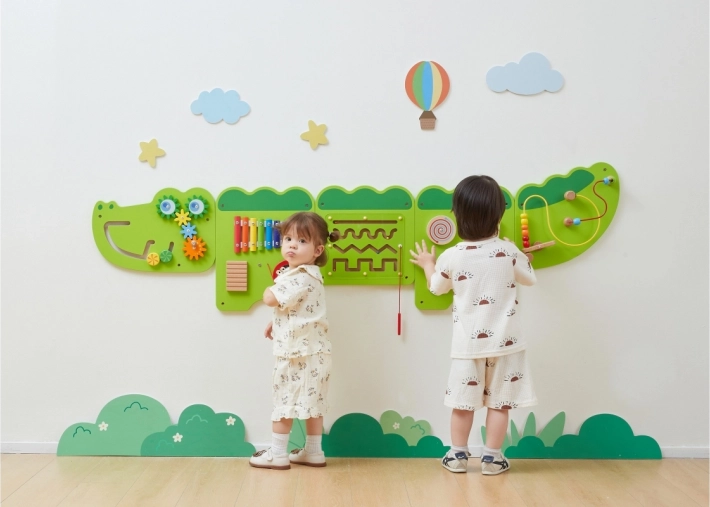 Vsak panel ponuja drugačno aktivnost – od igranja na ksilofon, prek vrtenja zobatih koles in diskov z vzorci, do vodenja kroglic in premikanja delčkov v labirintih. Otroci pri tem naravno urijo koordinacijo, prijem, potrpežljivost in reševanje problemov. Stenska montaža prihrani prostor in omogoča sočasno igro več otrok.