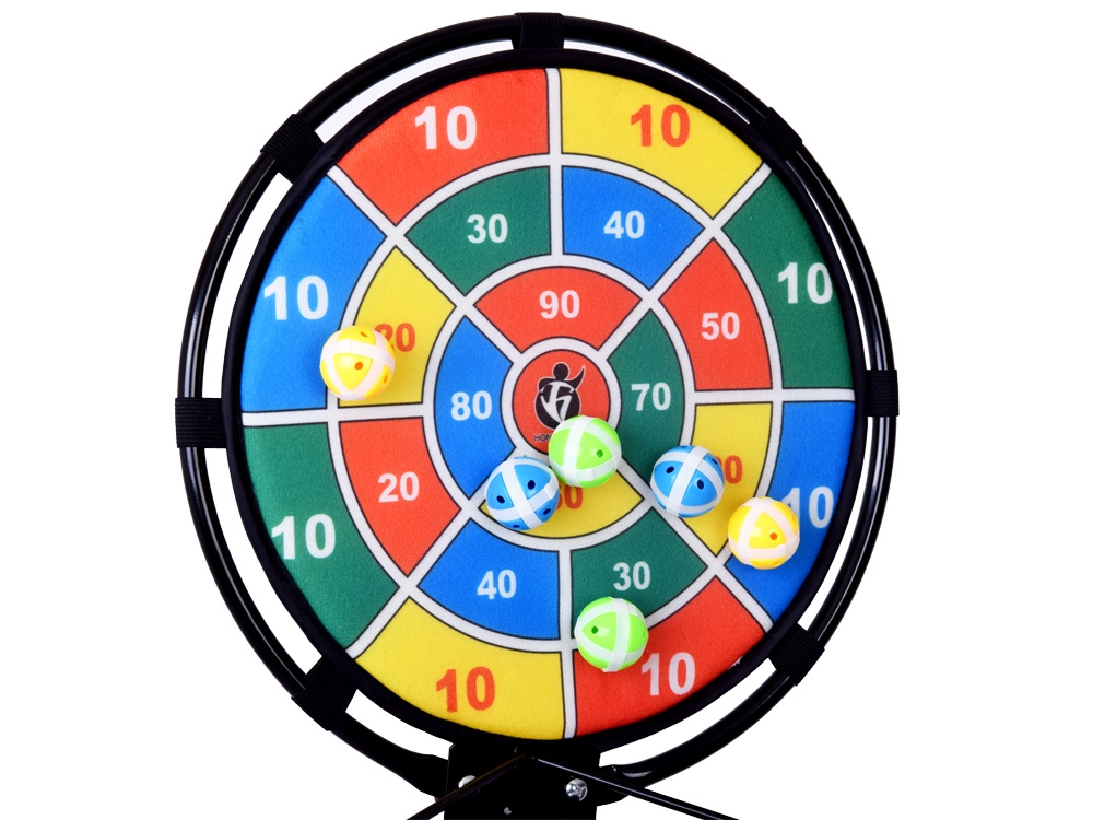 - Tarča: Vizualno privlačna s flanelasto površino za enostavno oprijemanje žogic. Spodbuja natančnost in koncentracijo.