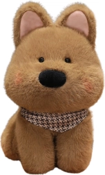 Plišasti rjav pes je izjemno ljubka igrača, ki takoj vzbudi simpatije. Zasnovan je s skrbnimi detajli, odlikujejo ga mehak kožušček, velik črn smrček in nežni rdečkasti lički. Njegove prisrčne črne oči in stoječa ušesa dajejo edinstven čar, ki ga poudarja očarljiva ruta v rjavem odtenku.