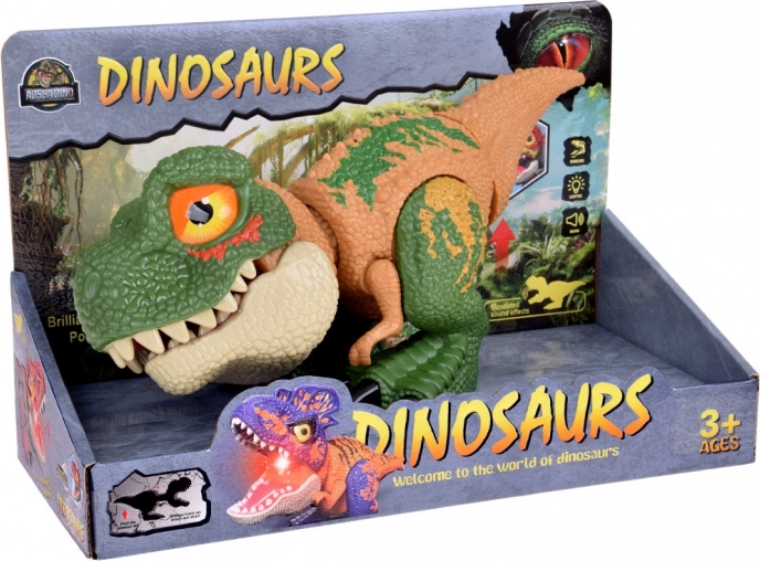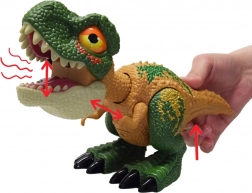 Prinesite domov mogočnega plenilca Tyrannosaurusa Rexa, ki bo vaše otroke navdušil s svetlobnimi in zvočnimi učinki. Ta realistična figura je odlična izbira za vse male paleontologe. S pritiskom na rep aktivirate učinke: glava se pomakne naprej, čeljust se odpre z realističnim rjovenjem, medtem ko iz čeljusti žari intenzivna rdeča svetloba, ki še okrepi vzdušje.