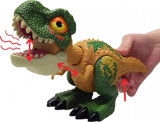 Premična glava, čeljust in okončine, dopolnjene s svetlobnimi in zvočnimi učinki, naredijo to igračo interaktivno in zabavno.