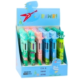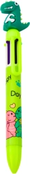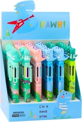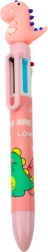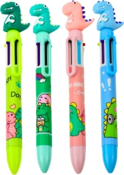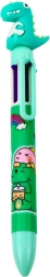 To večbarvno pero je idealno za otroke, ki imajo radi dinozavrske motive. Pero vsebuje 6 barv vložkov: modra, rdeča, zelena, oranžna, črna in vijolična. Vsaka barva je enostavno dosegljiva s preprostim pritiskom ustreznega drsnika, kar olajša hitro menjavo barve brez potrebe po dodatnem peresu.