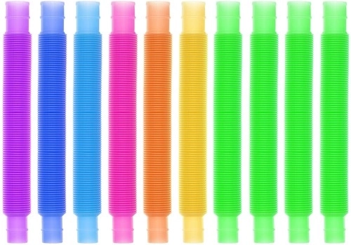 Ta set 10 senzoričnih cevk je zasnovan za zagotavljanje taktilne in slušne stimulacije. Cevke, na voljo v 7 različnih barvah - rumena, roza, vijolična, oranžna, modra, mornarsko modra in zelena, so idealne za izobraževalne igre kot so učenje črk, štetje in drugo. Njihova sposobnost povezovanja omogoča ustvarjanje različnih oblik kot so krogi in kvadrati, kar spodbuja otroško kreativnost in zagotavlja ure zabave. Za odrasle služijo kot odlično orodje za sproščanje stresa.