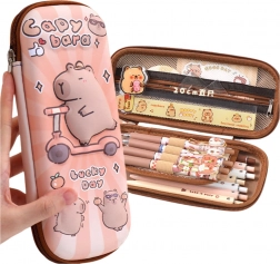 Ta prostoren peresnik je izdelan iz trpežnega in enostavnega za čiščenje materiala. Ima glavni predal z mrežastimi pregradami, ki sprejmejo kemične svinčnike, svinčnike, barvice, označevalce in druge šolske drobnarije. Zadrga omogoča hiter dostop do vsebine in jo varuje pred izgubo.