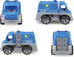 Priložena je aktivna figurica policista s ščitom in cestna zapora, ki otrokom omogoča ustvarjanje lastnih policijskih scenarijev ter vlogo pomagati in zaščititi. Igrača je popolnoma mehanska – brez baterij, samo čista zabava.