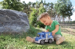 Odpirajoča se vrata, nagibna kabina in popolnoma mehansko upravljanje brez baterij spodbujajo domišljijo in motoriko.
